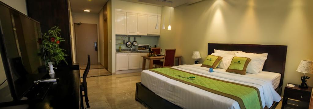 Diamond Bay Condotel gồm 3 loại căn hộ: căn hộ studio, căn hộ 01 phòng ngủ, căn hộ 02 phòng ngủ. Tất cả các căn hộ đều có bếp, dụng cụ bếp, bàn ăn,.... phù hợp với các đối tượng khách hàng có nhu cầu đi du lịch cùng với gia đình.