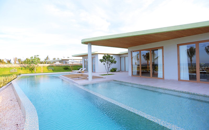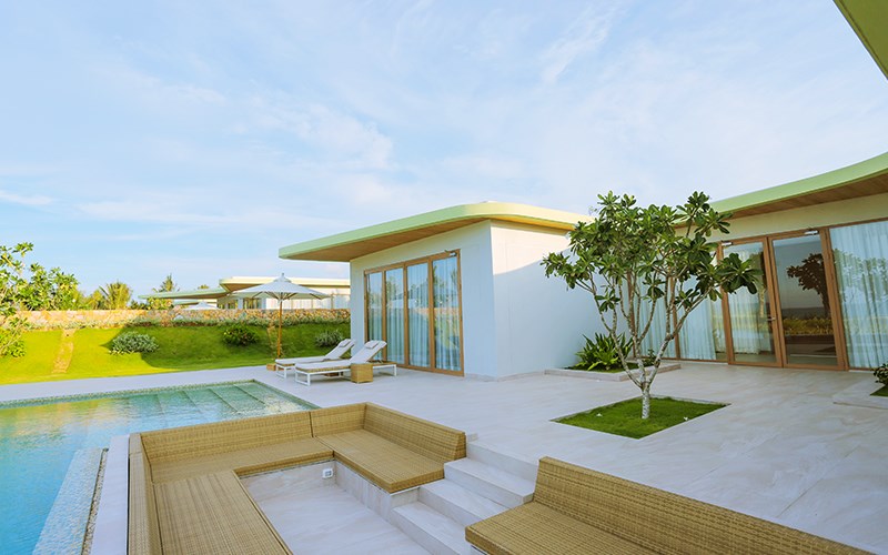 Tất cả các căn biệt thự đều có khoảng không gian rộng mở để đón gió và ánh sáng tự nhiên, có hồ bơi riêng trước từng căn biệt thự và được bao bọc xung quanh bởi không gian cây cối xanh mát rượi.