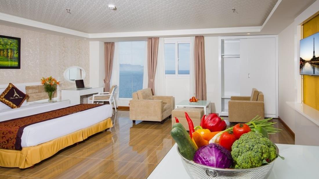 Khách sạn Paris Nha Trang có tổng cộng 130 phòng, 12 căn hộ trong đó có 66 phòng Superior, 42 phòng Deluxe, 21 phòng Executive Deluxe, 1 phòng Premier Suite. Tất cả các phòng đều có diện tích rộng rãi, thoáng mát với cửa sổ cỡ lớn hướng biển hoặc thành phố -được trang bị đầy đủ tiện nghi hiện đại, dịch vụ cao cấp cùng đội ngũ nhân viên nhiệt tình và giàu kinh nghiệm. Không chỉ thu hút du khách bởi hệ thống phòng nghỉ sang trọng, Paris Nha Trang còn cung cấp đầy đủ các dịch vụ tiện ích khác, như: khu bể bơi ngoài trời, máy tập Gym, quầy hàng lưu niệm, bàn thông tin du lịch và quầy dịch vụ văn phòng 24h.
