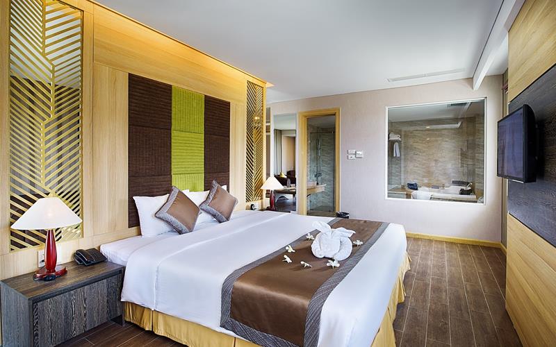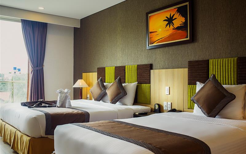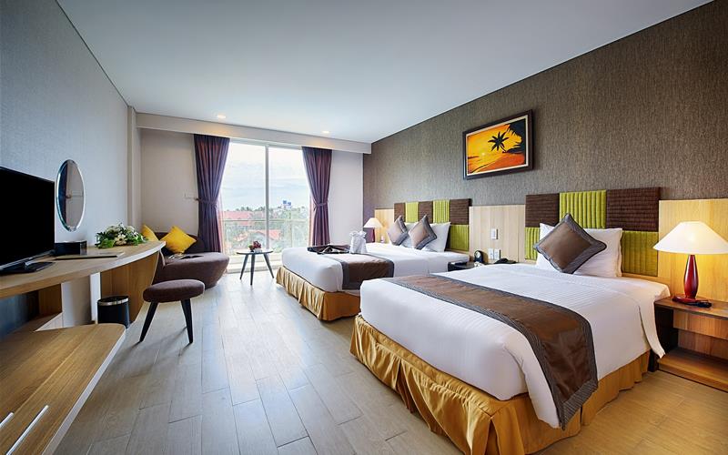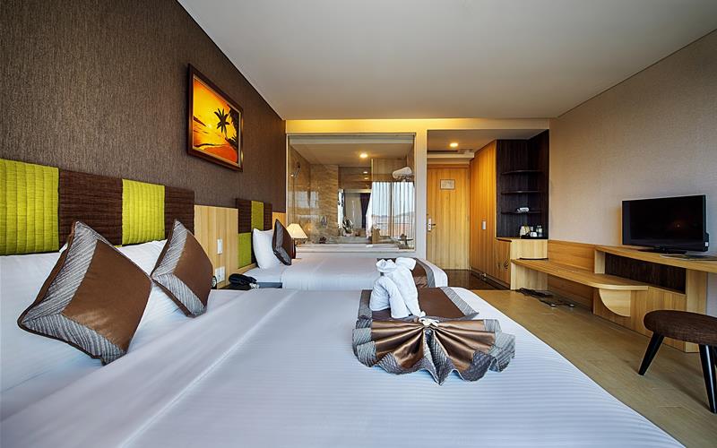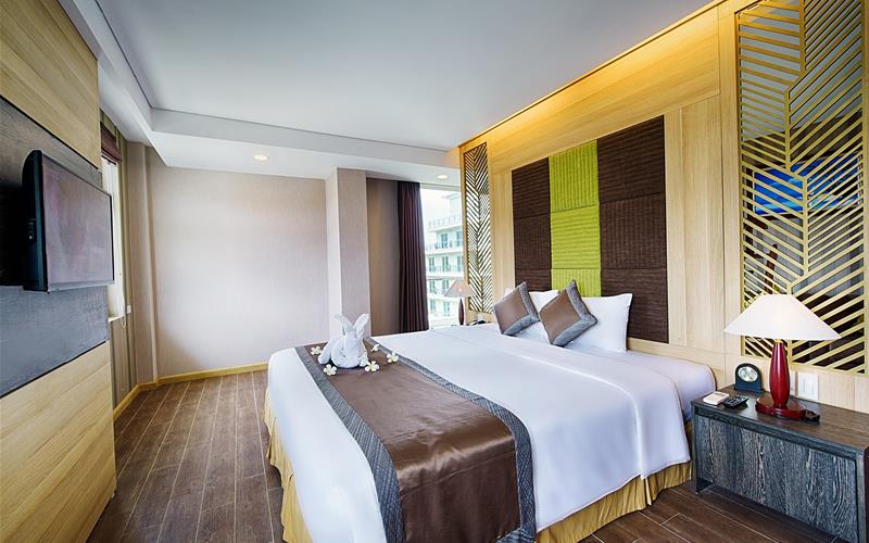 Khách sạn được thiết kế với tiêu chuẩn 4 sao, tự hào mang đến cho du khách một nét kết hợp tươi mới giữa nền văn hóa hiện đại và không gian thiên nhiên hiền hòa của biển xanh, cát trắng, nắng vàng. Từ đây, chỉ cần đi bộ vài bước chân, quý khách đã đứng trước bãi biển Mũi Né hoang sơ và xinh đẹp để hoà mình vào không khỉ biển trong lành và tươi mát.