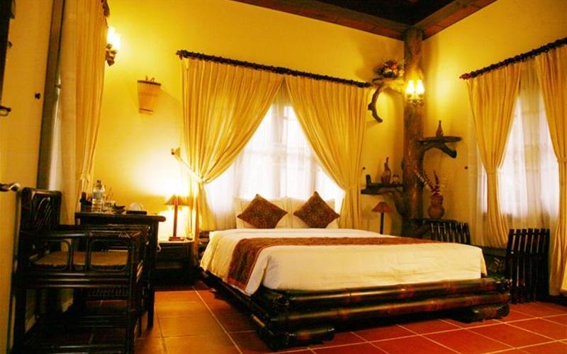 Quý khách sẽ cảm thấy thoải mái với không gian rộng, kiến trúc nhà rông và nhà Việt Nam. Trang trí nội thất thanh lịch, phòng tắm trong nhà và ngoài trời tư nhiên. Khi màn đêm buông xuống, hồ bơi và vườn cây ăn trái xung quanh cùng ánh đèn đêm lung linh sẽ tạo cảnh quan thật huyền ảo.